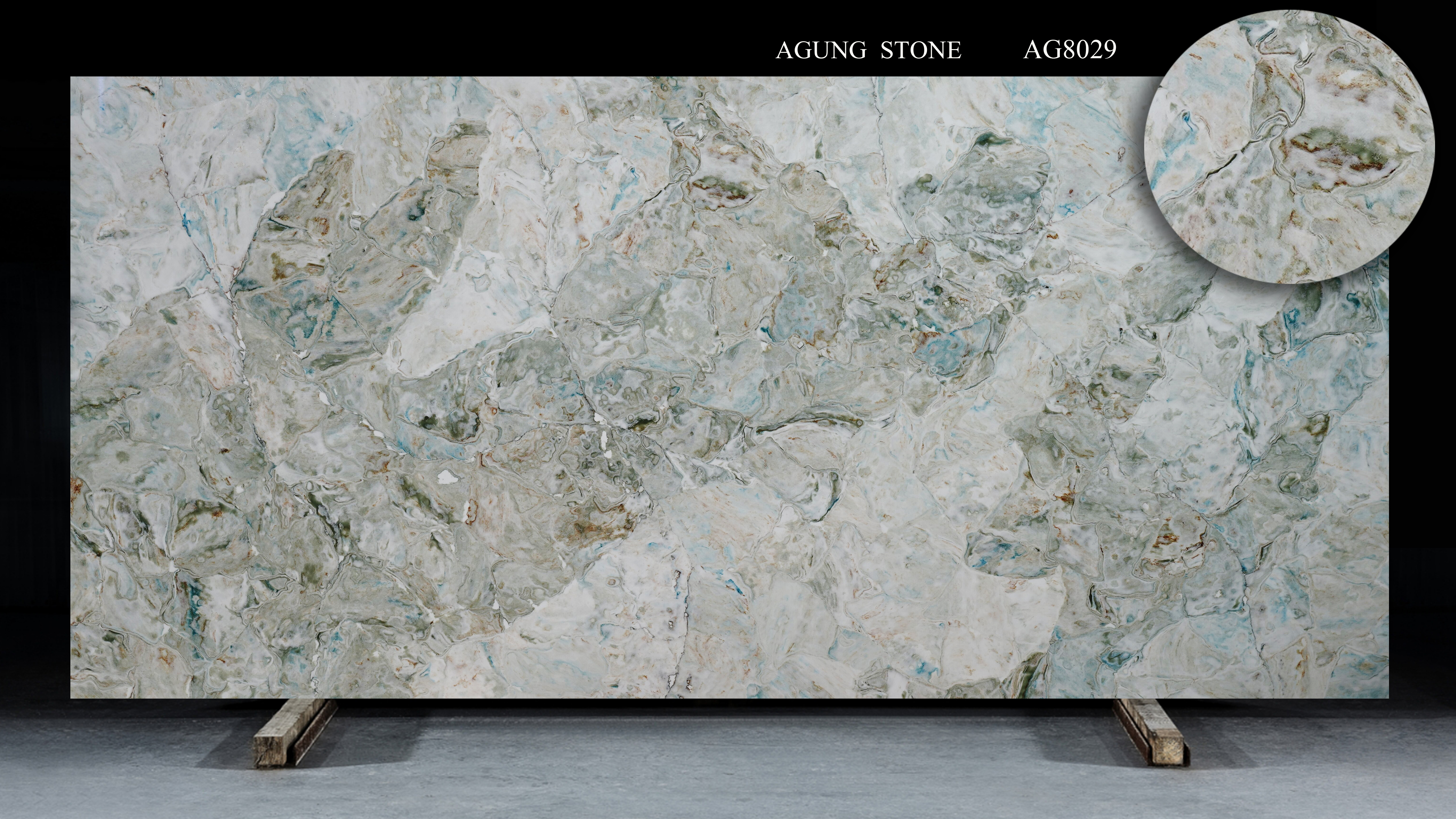 The “Meadow” quartz slab redefines organic modernism with its translucent white/grey base, where bold ivory veins collide with oxidized gold streaks. Like lichen creeping across weathered stone, the metallic deposits create an arresting contrast, shifting from antique brass to honeyed amber under changing light. Proprietary mineral infusion technology ensures no two slabs repeat the same “geological narrative”.